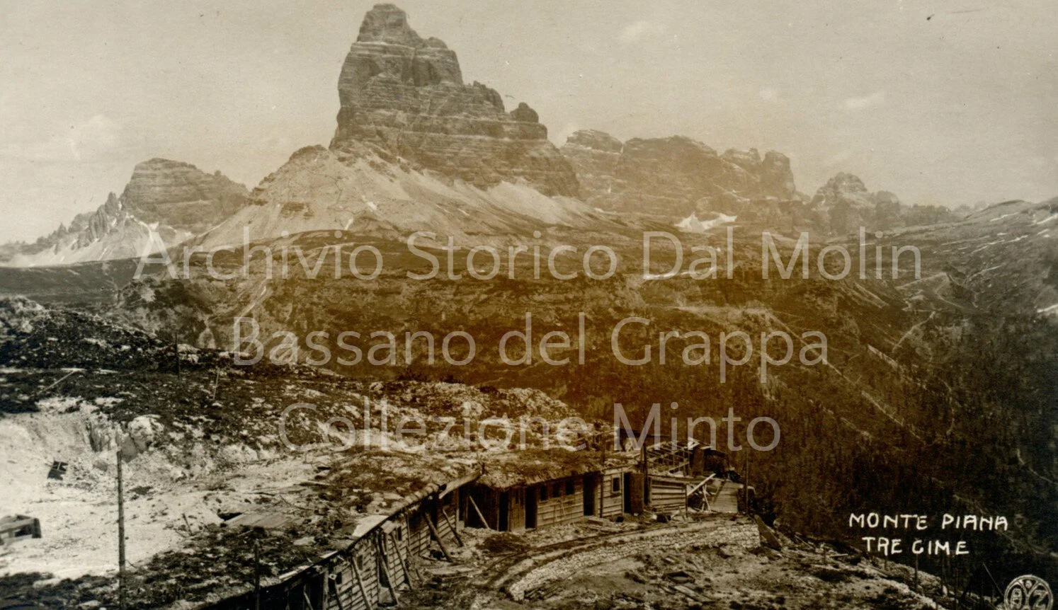 Un altro incantevole scenario ambientale non risparmiato dalla Grande Guerra. Qui spesso chi vi combatte lo fa per la propria casa e talvolta contro genti da lui non lontane nella vita civile, operando esclusivamente in alta quota e con piccoli reparti, spesso in condizioni climatiche estreme. Ma i protagonisti dovranno lottare anche contro il comune nemico dell’inverno, soprattutto nel 1917, affrontando ogni genere di sacrificio e realizzando imprese alpinistiche di straordinario valore. Gran parte di queste immagini eccezionali sono state gentilmente concesse dalla Collezione Silvio Minto. Un ambiente sino ad allora inviolato iniziò così a popolarsi di uomini e materiali; nei luoghi più impensati e alle quote più elevate sorgono baracche e vengono scavate trincee: solo la neve e le nuvole riescono ad ammantare e nascondere, talvolta, le ferite inferte alle montagne dalla guerra. L’uomo vivrà e combatterà per anni su queste cime inseguendo quando possibile una parvenza di normalità che sarà rapidamente travolta dalla guerra e piegata dalle condizioni climatiche proibitive. Così vicino al cielo, nell'eterno silenzio della montagna, molti cercheranno naturalmente in una fede sincera il conforto alle proprie sofferenze. Sempre più spesso la sopravvivenza di chi resterà in alta quota dipenderà dal sacrificio dei portatori e delle colonne che risaliranno dai fondovalle. E tutto questo finirà per rafforzare nella maggior parte dei soldati, oltre al rispetto per la grande montagna, i sentimenti di solidarietà e pietà tra commilitoni e non di rado fra gli stessi avversari.